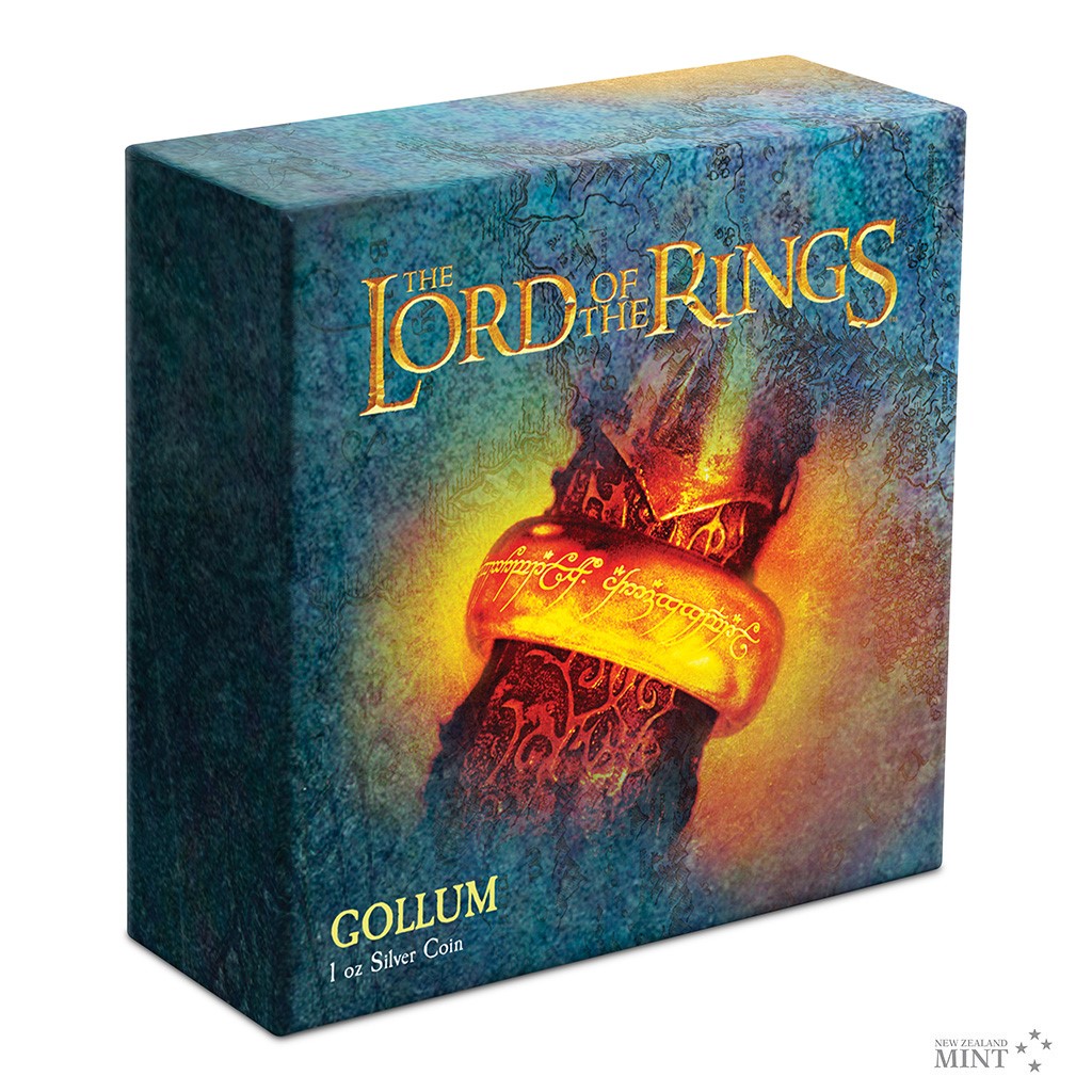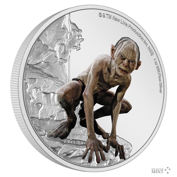 Další stříbrná mince z cyklu inspirovaného filmovou trilogií Pán prstenů připomíná politováníhodného Gluma.