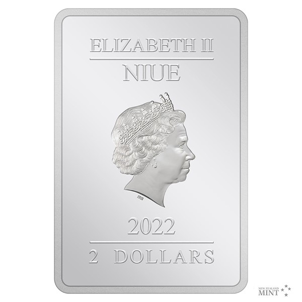 Neobvyklá obdélníková mince má podobu filmového plakátu. V živých barvách, kterých bylo docíleno technologií kolorování, se vyjímají oblíbené postavy příběhu – Aragorn, Arwen, Gandalf, Frodo a Sam. Stříbrnému reliéfu pak vévodí politováníhodný Glum. Protože vydavatelem mince je ostrov Niue, její averzní strana nese jeho atributy – portrét a jméno královny Alžběty II., rok vydání mince 2022 a nominální hodnotu 2 DOLLARS (NZD). Podoba oficiálně licencované ražby je dílem výtvarného kolektivu Novozélandské mincovny.
