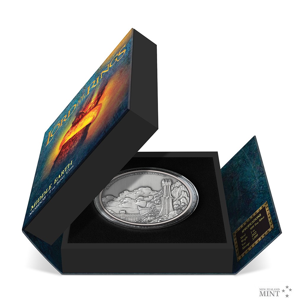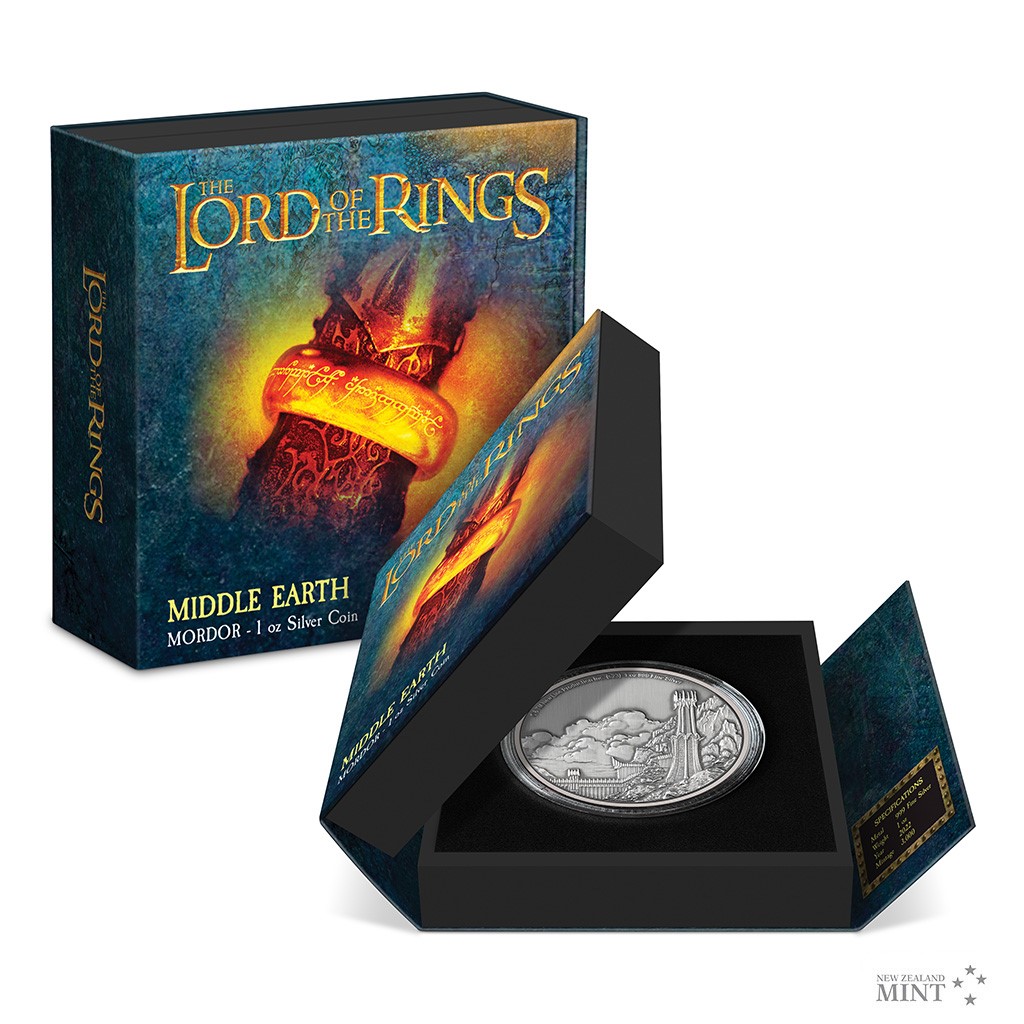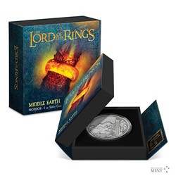 Další stříbrná mince z cyklu inspirovaného filmovou trilogií Pán prstenů připomíná temnotu Mordoru.