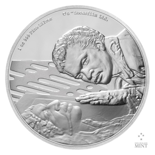 Reverzní strana pamětní mince předkládá scénu z páté filmové epizody Hvězdných válek – Lando plný výčitek se sklání nad zmraženým tělem svého přítele Hana Sola, kterého zradil, aby ochránil své postavení. Averzní strana pak nese portrét a jméno panovnice Alžběty II., rok vydání 2020 a nominální hodnotu TWO DOLLARS (NZD) – tedy atributy emitenta mince, kterým je ostrov Niue. Minci v oficiální licenci vyrazil tým Novozélandské mincovny.