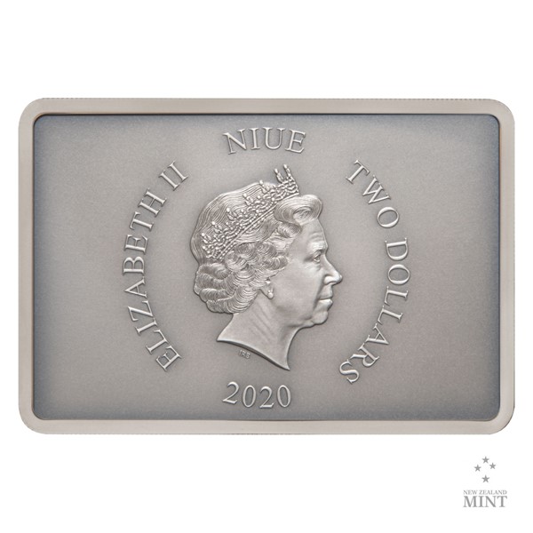 Reverzní strana obdélníkové mince zkrášlené patinou předkládá kolorovanou polopostavu stormtroopera, který svírá blaster. V plastickém reliéfu na pozadí je pak nastoupena celá úderná jednotka. Vydavatelem mince je tichomořský ostrov Niue, a její averzní strana proto nese jeho atributy – portrét a jméno královny Alžběty II., rok vydání mince 2020 a nominální hodnotu TWO DOLLARS (NZD). Podoba oficiálně licencované ražby je dílem výtvarného kolektivu New Zealand Mint.