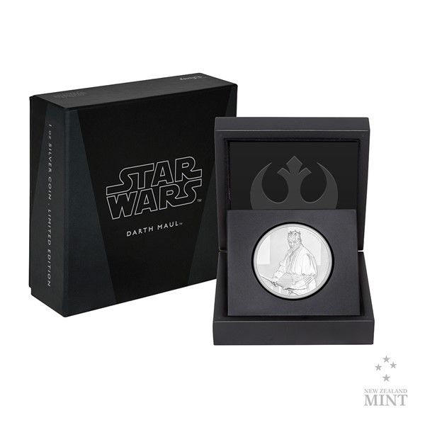 V sérii pamětních mincí inspirovaných vesmírnou ságou Star Wars se dosud objevovaly pouze postavy z původní filmové trilogie. První postavou nové trilogie zvěčněnou v ryzím stříbře je Darth Maul.