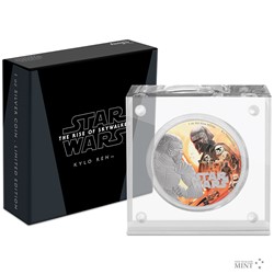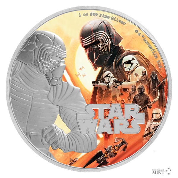 Hrdinové vesmírné ságy Star Wars jsou na pamětních mincích jako doma. Stříbrná mince s motivem IX. filmové epizody je věnována zlovolnému Kylo Renovi.