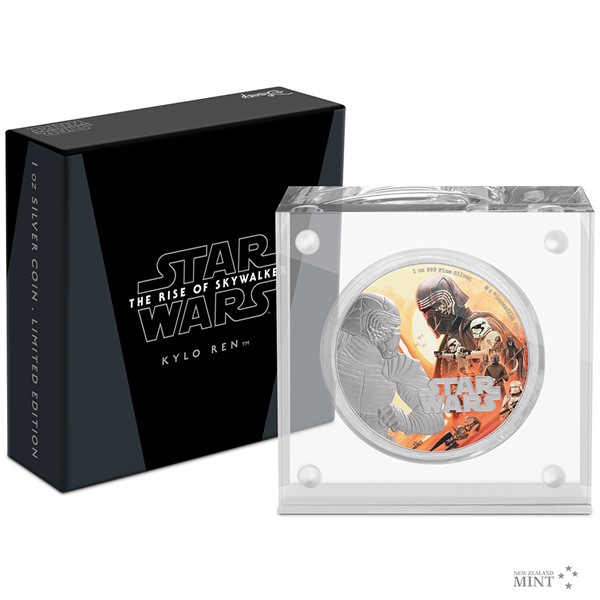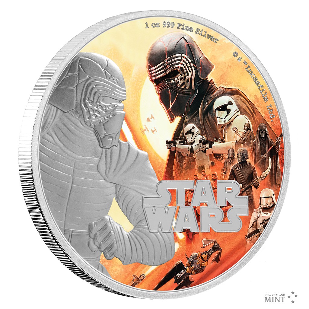 Reverzní strana mince předkládá hned dvě vyobrazení Kylo Rena – jedno je reliéfní a jedno kolorované. V živých barvách ho doprovázejí jeho stormtroopeři, rytíři a stíhačky TIE. Vydavatelem mince je tichomořský ostrov Niue, a její averzní strana proto nese jeho atributy – portrét a jméno královny Alžběty II., rok vydání mince 2019 a nominální hodnotu TWO DOLLARS (NZD). Podoba oficiálně licencované ražby je dílem výtvarného kolektivu New Zealand Mint.