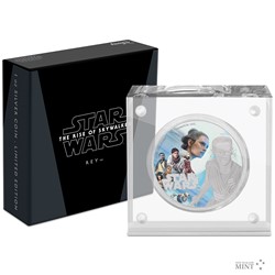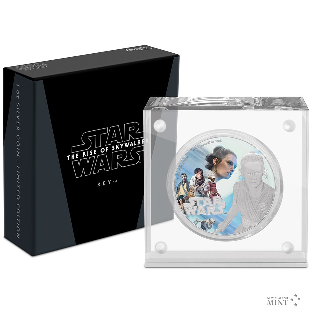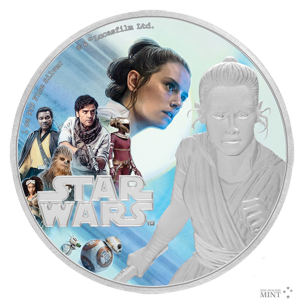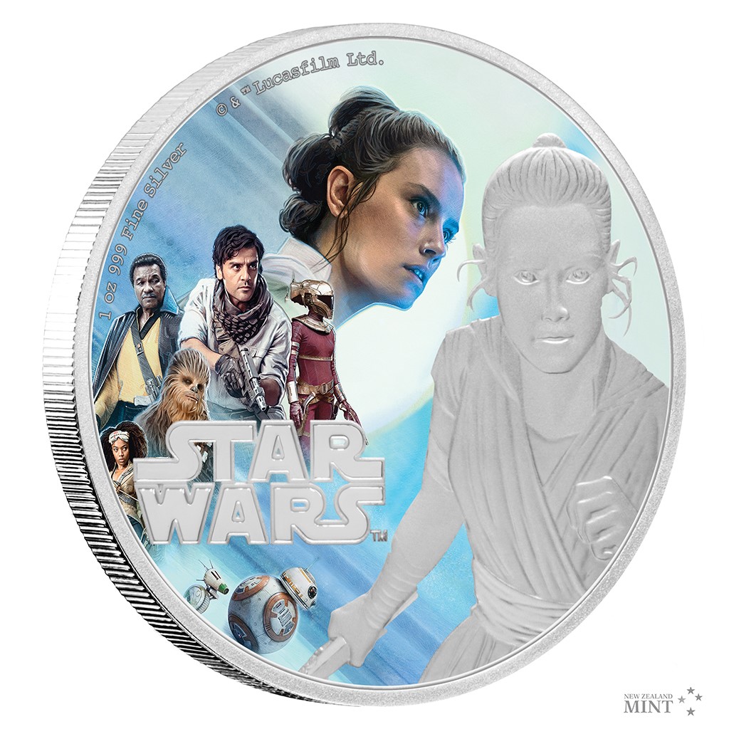 Hrdinové vesmírné ságy Star Wars jsou na pamětních mincích jako doma. Stříbrná mince s motivem IX. filmové epizody je věnována odvážné Rey.