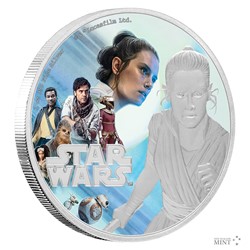 Reverzní strana mince předkládá hned dvě vyobrazení Rey – jedno je reliéfní a jedno kolorované. V živých barvách ji doprovázejí její věrní spolubojovníci. Vydavatelem mince je tichomořský ostrov Niue, a její averzní strana proto nese jeho atributy – portrét a jméno královny Alžběty II., rok vydání mince 2019 a nominální hodnotu TWO DOLLARS (NZD). Podoba oficiálně licencované ražby je dílem výtvarného kolektivu New Zealand Mint.