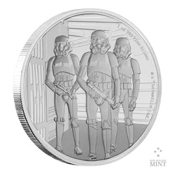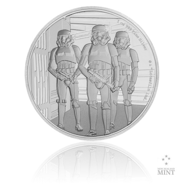 Série pamětních mincí s motivy vesmírné ságy Star Wars dosud představovala hrdiny, jejichž jména zná každý správný fanoušek. Nyní se ale v ryzím stříbře objevuje armáda anonymních stormtrooperů.
