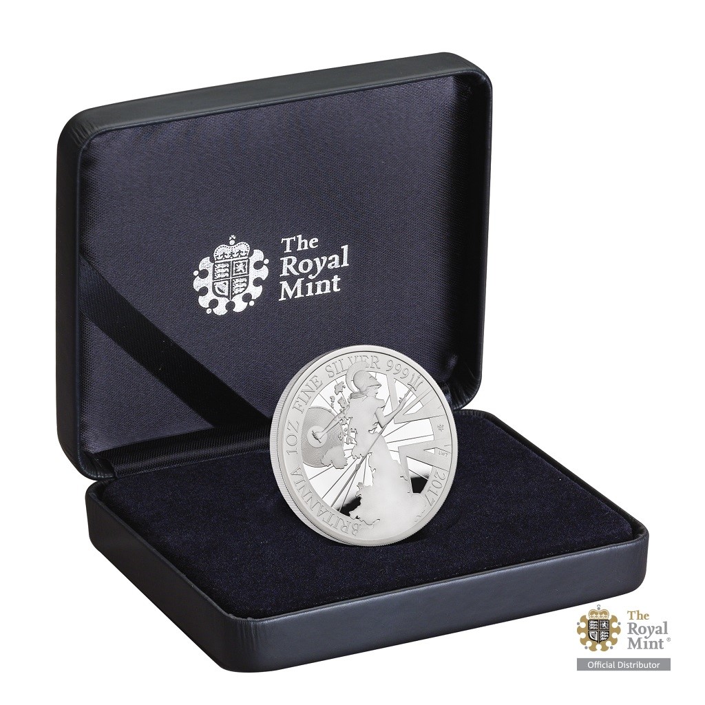 Investiční mince britské královské mincovny Royal Mint jménem Britannia slaví výročí a při této příležitosti vychází speciální jubilejní emise vyražená z jedné trojské unce ryzího stříbra.