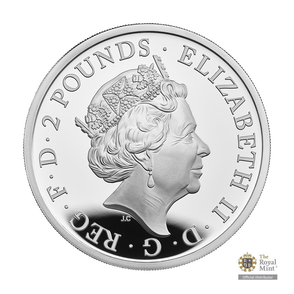 Reverzní straně mince, jejíž autorkou je italská výtvarnice Sandra Deiana, vévodí Britannia v podobě takzvané trojné bohyně. Tento prastarý pohanský koncept přisuzuje božské ženě tři podoby, jimiž jsou panna, matka a stařena. Averzní strana mince pak náleží atributům emitenta – tj. nominální hodnotě 2 POUNDS (GBP), portrétu královny Alžběty II. a textu „ELIZABETH II D G REG F D“ (Alžběta II., z Boží milosti královna, ochránkyně víry).