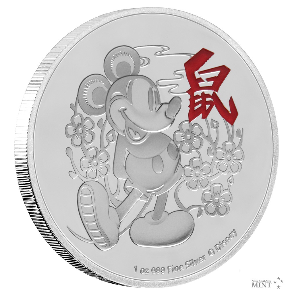 Reverzní strana stříbrné mince předkládá animovaného hrdinu v podobě z raných Disneyho grotesek. Doprovází ho červeně kolorovaný čínský znak, který neznamená nic jiného než „myš“. Averzní strana pak nese portrét a jméno panovnice Alžběty II., rok vydání 2020 a nominální hodnotu TWO DOLLARS (NZD) – tedy atributy emitenta mince, kterým je ostrov Niue. Minci v oficiální licenci vyrazil tým Novozélandské mincovny.