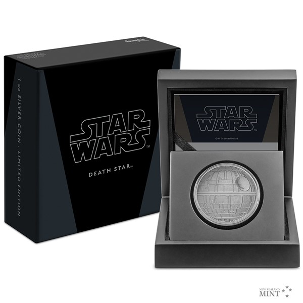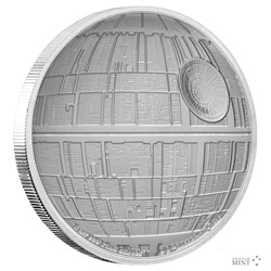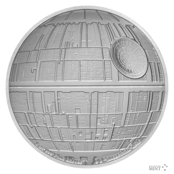 Pamětní emise s motivy Hvězdných válek představují nejrůznější mimozemšťany, droidy, vesmírné lodě, … Je ale jeden objekt, jehož podoba si o vyobrazení na stříbrné minci přímo říká. Je jím Hvězda smrti.