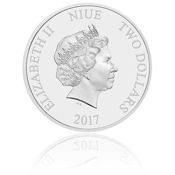 Reverzní strana mince vyobrazuje Chewbaccu v zápalu boje – střelbou z kuše kryje ústup svých přátel a na pozadí je patrný Millennium Falcon. Averzní strana pak patří jménu a portrétu královny Alžběty II., roku emise 2017 a nominální hodnotě TWO DOLLARS (NZD), tedy atributům vydavatele mince, kterým je ostrov Niue. Výtvarná podoba oficiálně licencované ražby je dílem designového kolektivu New Zealand Mint.