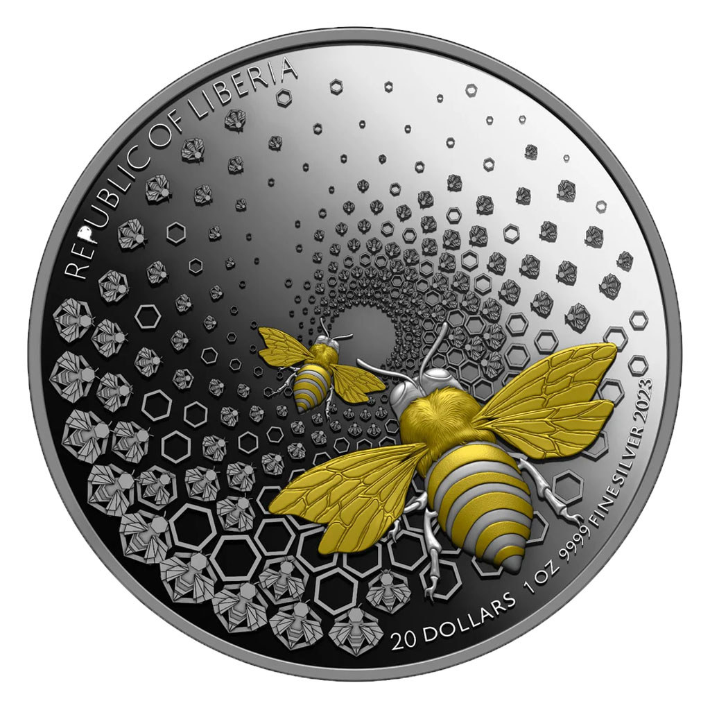 Okolní mincovní plocha je pak poseta desítkami drobných včelek a šestihranů,