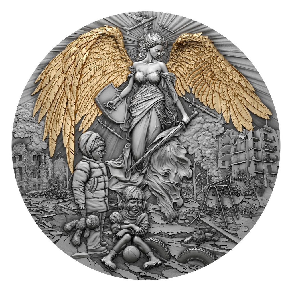 Dvouuncová stříbrná mince s motivem anděla strážného představuje výtvarný a technický unikát i zamyšlení nad aktuální situací ve světě.
