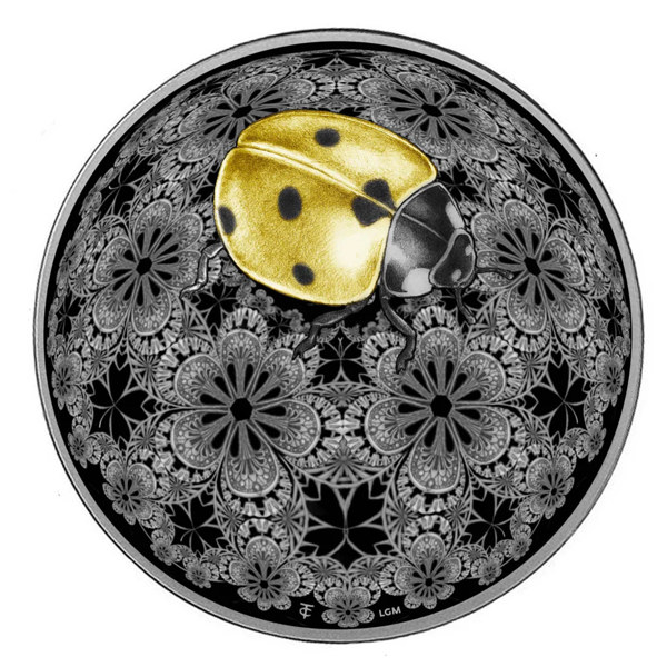 Dvouuncová stříbrná mince s motivem zlaté berušky je výtvarný i technický unikát.