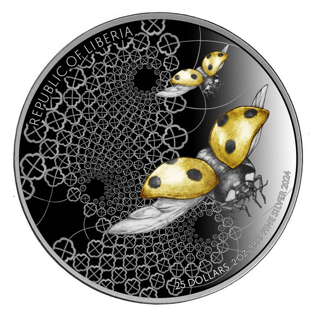 Reverzní strana pamětní mince předkládá realisticky ztvárněnou berušku a dekorativní květinový vzor. Na averzní straně pak najdete další dva brouky – tentokrát v letu nad abstraktní loukou posetou desítkami čtyřlístků pro štěstí. Krovky berušek jsou ve všech případech pro kontrastní efekt pozlaceny. To vše je zpracováno ve vysokém reliéfu. Protože mince vychází v zahraniční licenci státu Libérie, nese na averzní straně ještě opis REPUBLIC OF LIBERIA a nominální hodnotu 25 DOLLARS (LRD).