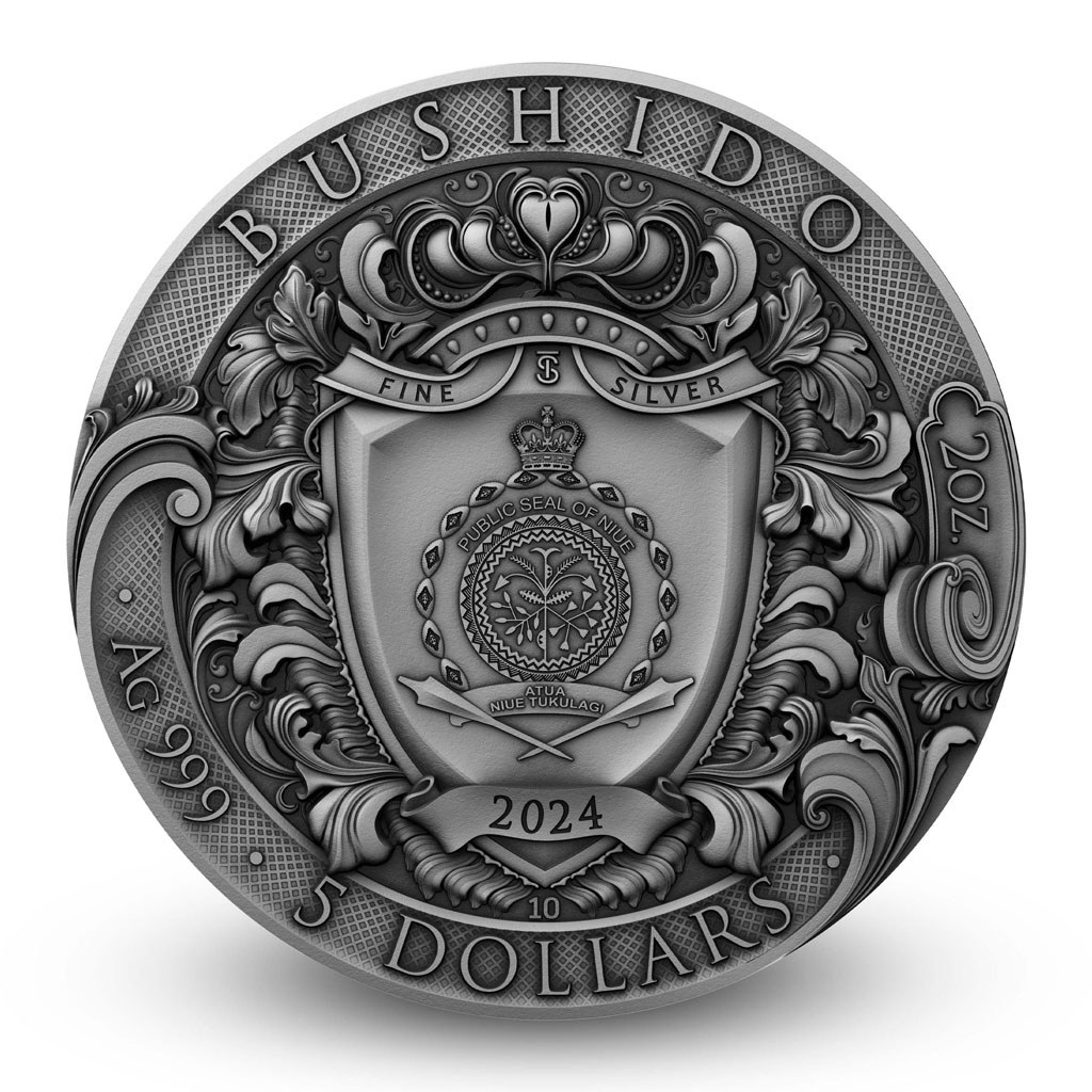Dvouuncová stříbrná mince s motivem samurajského kodexu bušidó představuje výtvarný a technický unikát i sběratelskou raritu.