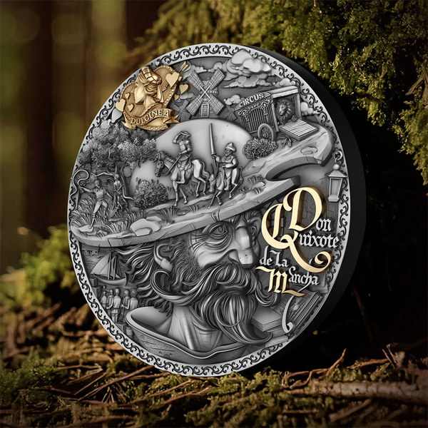 Dvouuncová stříbrná mince s motivem legendárního románu Důmyslný rytíř Don Quijote de la Mancha představuje výtvarný a technický unikát i sběratelskou raritu.