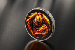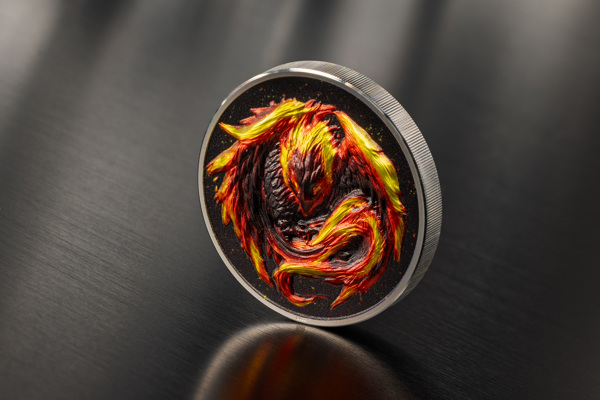 Italská medailérka Arianna Cicconi věnovala reverzní stranu mince divoce vyhlížejícímu Fénixovi. Barevné plameny, kterými hoří jeho tělo, ostře kontrastují s černou povrchovou úpravou ražby. V podobném duchu se nese i averzní strana, která předkládá vybuchující sopku. Součástí averzu jsou ještě atributy emitenta mince – státní znak republiky Palau a nominální hodnota 10$ (USD). To vše je zpracováno v hlubokém reliéfu.