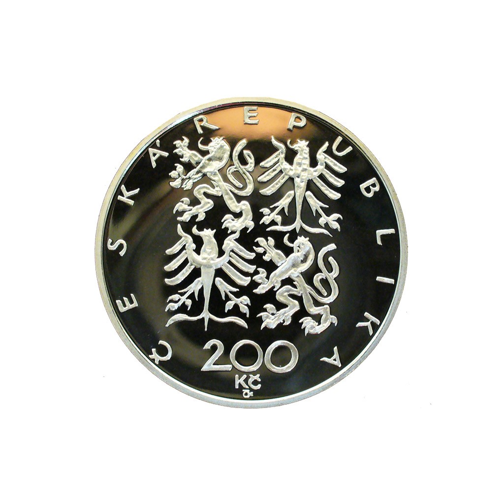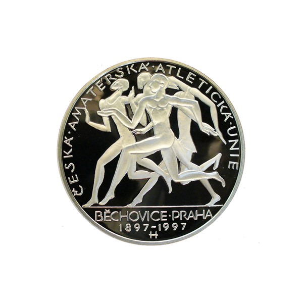 Stříbrná mince 200 Kč 1997 100. výr. z akl. Č. m. unie a kon. běhu Praha-Běchovice proof