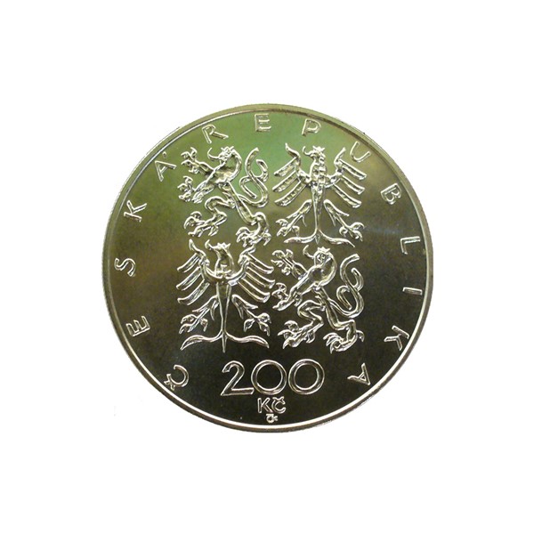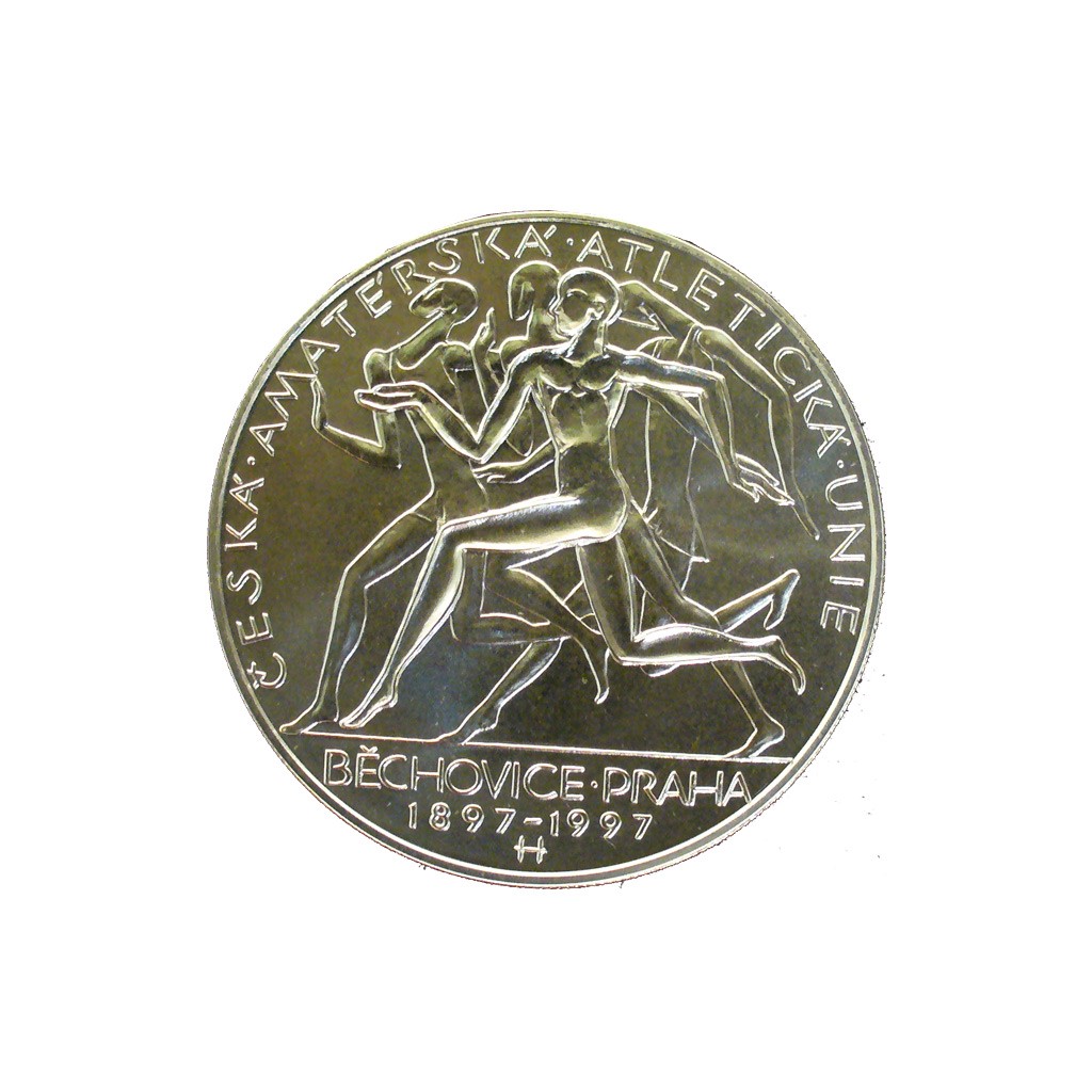 Stříbrná mince 200 Kč 1997 100. výr. z akl. Č. m. unie a kon. běhu Praha-Běchovice stand