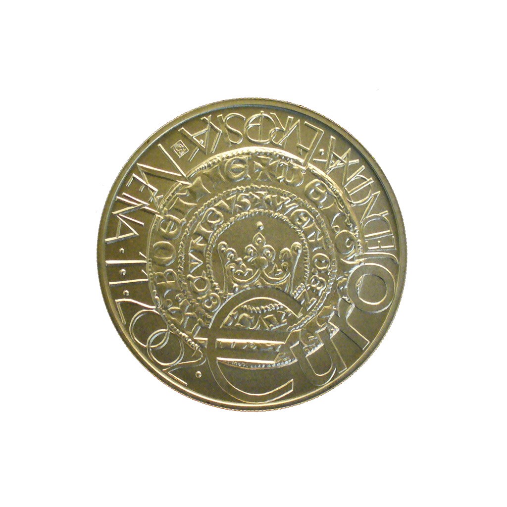 Stříbrná mince 200 Kč 2001 Zavedení Euro měny 2002 stand