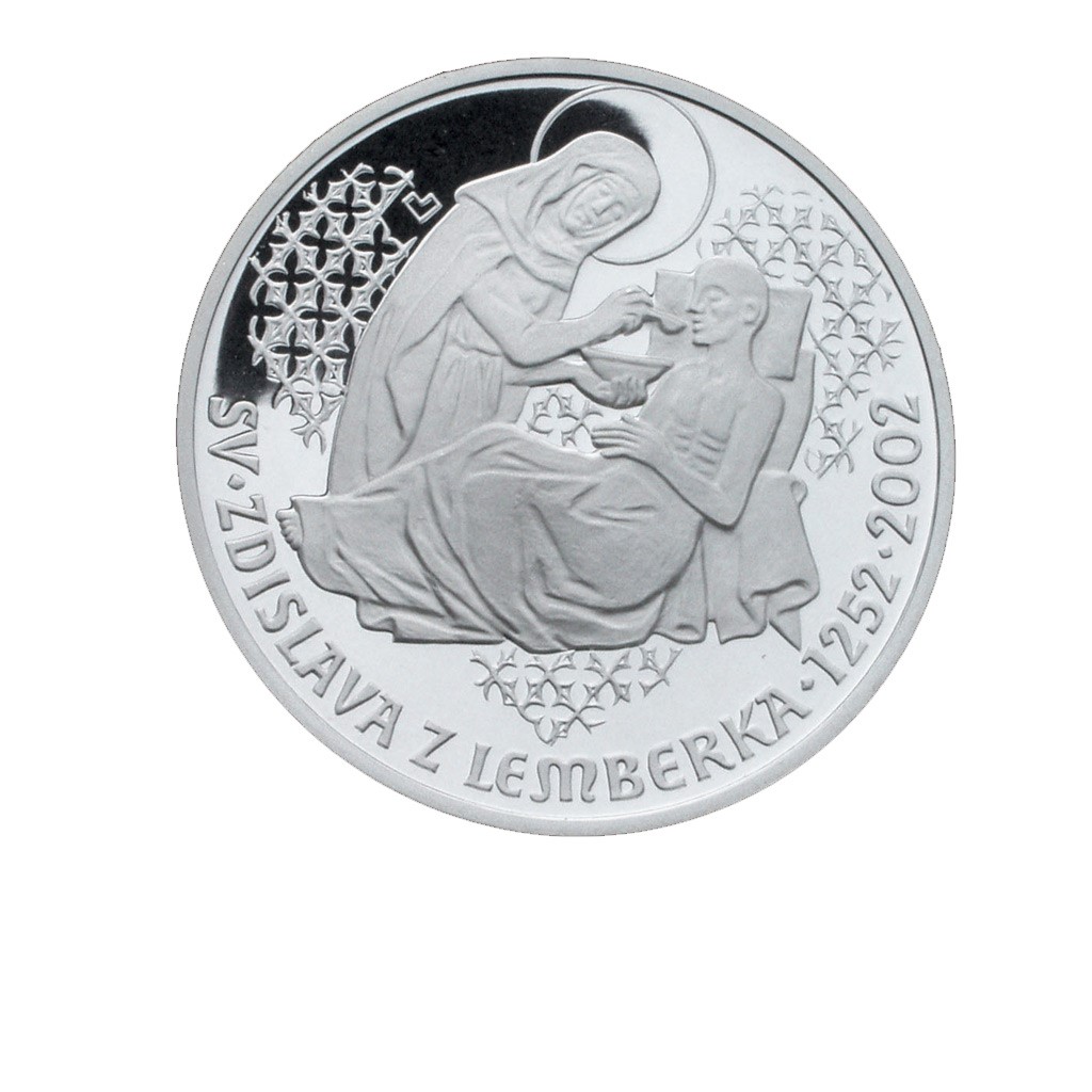 Stříbrná mince 200 Kč 2002 750. výr. úmrtí Sv. Zdislavy z Lemberka stand