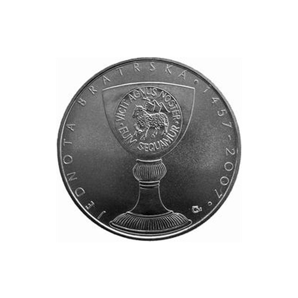 Stříbrná mince 200 Kč 2007 550. výr. založení Jednoty Bratrské stand