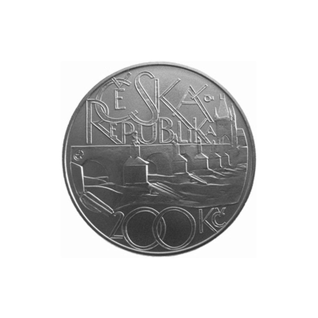 Stříbrná mince 200 Kč 2007 Karlův most stand