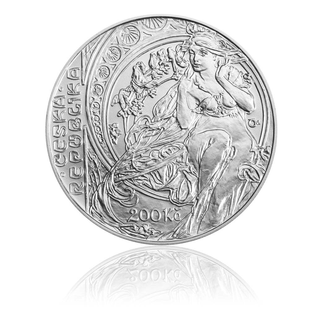 Stříbrná mince 200 Kč 2010 Alfons Mucha stand