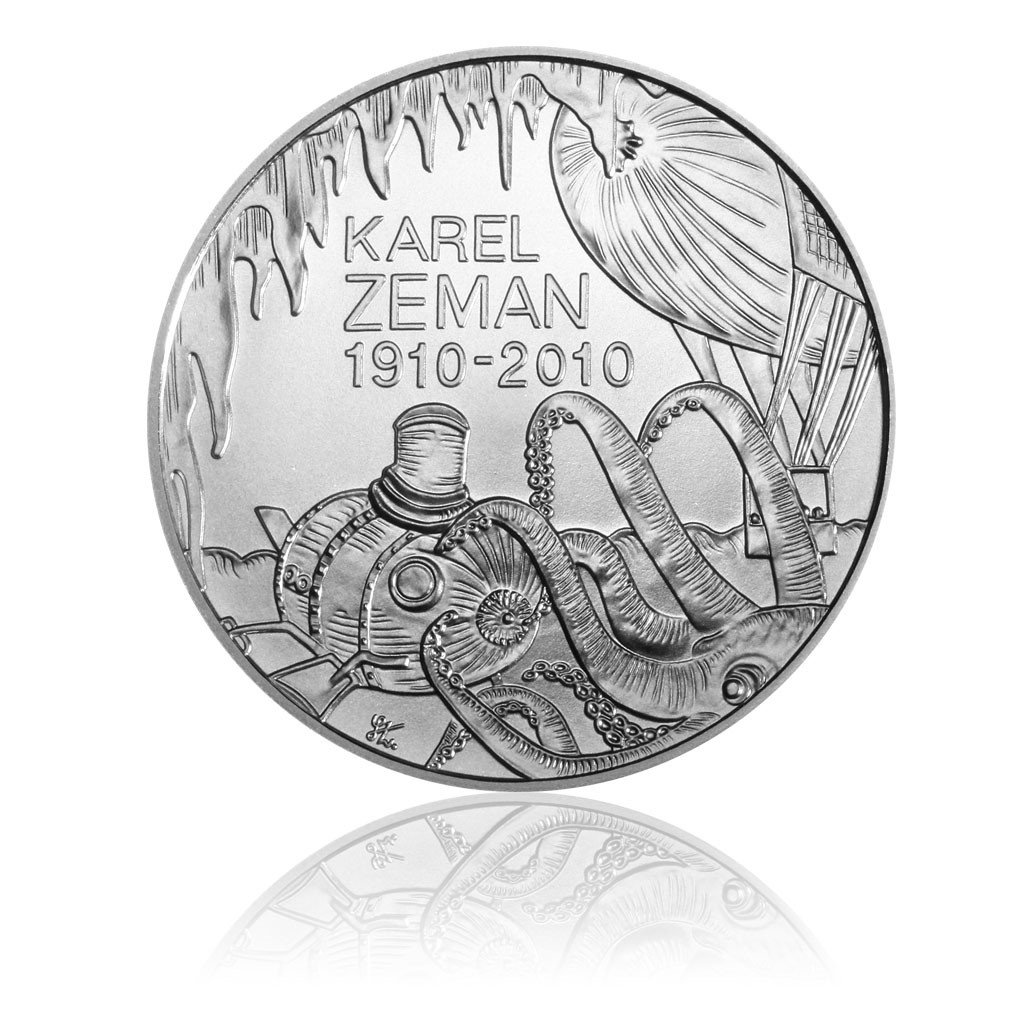 Dnem 27. října 2010 vydává Česká národní banka pamětní stříbrnou dvousetkorunu k 100. výročí narození Karla Zemana. Dvousetkoruna je ražena ze slitiny obsahující 900 dílů stříbra a 100 dílů mědi a vydává se ve dvojím provedení, v běžném (standard) a špičkovém (proof), které se liší povrchovou úpravou a provedením hrany. U mincí špičkové kvality je pole mince vysoce leštěné a reliéf je matován, hrana je hladká s vlysem „ČESKÁ NÁRODNÍ BANKA * Ag 0.900 * 13 g *“. Mince běžné kvality mají hranu vroubkovanou. Průměr mince je 31 mm, hmotnost 13 g a síla je 2,3 mm. Stejně jako u každé ražby mincí jsou i u těchto mincí povoleny odchylky v průměru 0,1 mm a v síle 0,15 mm. V hmotnosti je povolena odchylka nahoru 0,26 g a v obsahu stříbra odchylka nahoru 1%. Na lícní straně mince je kompozice postav z filmů Karla Zemana – vpředu čaroděj z filmu „Čarodějův učeň“, vlevo Honzík a Mařenka z filmu „Pohádka o Honzíkovi a Mařence“ a vpravo Sindibád z filmu „Pohádky tisíce a jedné noci“. Za postavami je na filmovém pásu označení nominální hodnoty mince se zkratkou peněžní jednotky „200 Kč“, nad ním název státu „ČESKÁ REPUBLIKA“. Značka České mincovny tvořená kompozicí písmen „Č“ a „M“ je umístěna při pravém okraji mince vedle postavy Sindibáda. Na rubu je rovněž kompozice motivů z filmů Karla Zemana – ponorka, chobotnice a jeskyně z filmu „Vynález zkázy“ a vzducholoď z filmu „Ukradená vzducholoď“. Uprostřed mincovního pole vedle vyobrazení vzducholodě je nápis „KAREL ZEMAN“ a letopočty „1910 – 2010“. Značka autorky dvousetkoruny, Lenky Nebeské, DiS., tvořena písmeny „L“ a „N“, je při spodním okraji dvousetkoruny. Ke každé minci se dodává katalogová karta fialové barvy, na níž je popis mince a její plastické vyobrazení. Limitovaný náklad 9500 ks.