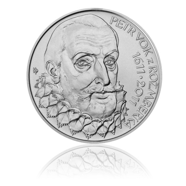 400. výročí úmrtí posledního představitele šlechtického rodu Rožmberků Petra Voka z Rožmberka připomene stříbrná dvousetkorunová mince. Umělecký návrh mince, která je poslední ze čtveřice dvousetkorunových mincí vydaných v roce 2011, vznikl na základě celostátní anonymní soutěže vyhlášené Českou národní bankou. K realizaci byl vybrán a doporučen návrh averzní strany pana Jaroslava Bejvla a návrh reverzní strany pana Petra Horáka. Česká mincovna razí mince pro ČNB ze stříbra o ryzosti 0,925. Běžné a špičkové provedení se liší povrchovou úpravou a provedením hrany. U mincí špičkové kvality je pole mince vysoce leštěné a reliéf je matován, hrana je hladká, zatímco mince běžné kvality mají hranu vroubkovanou. Průměr mince je 31 mm, hmotnost 13 g a síla 2,35 mm. Na líci dvousetkoruny je vyobrazen klášter ve Vyšším Brodě a pohřební štít Petra Voka. V opisu stojí název státu „ČESKÁ REPUBLIKA“ a v řádku pak nominální hodnota mince „200 Kč“. Klášter založil Vok z Rožmberka roku 1259 a povolal sem cisterciáky z rakouského Wilheringu. Na přání zakladatele se Vyšší Brod stal rodovým klášterem a od od 13. do 17. století v něm bylo pohřbeno deset generací této rodiny. Vyšebrodský chrám tak představuje nejvýznamnější české rodové mauzoleum. Rubové straně dominuje portrét Petra Voka. Po obvodu mince vpravo je text „PETR VOK Z ROŽMBERKA“ a letopočty 1611–2011. Ke každé minci se dodává katalogová karta bílé barvy, na níž je popis mince a její plastické vyobrazení. Limitovaný náklad 8300 kusů.