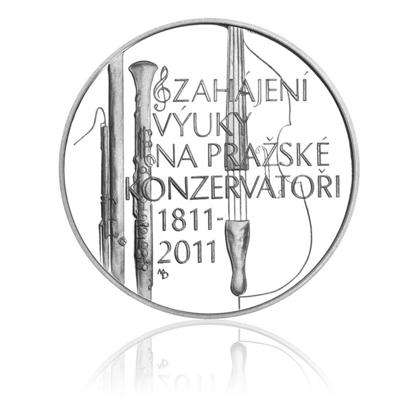 Zahájení výuky na Pražské konzervatoři připomene pamětní stříbrná mince, kterou vydává Česká národní banka do oběhu 30. března 2011. 200Kč mince vydaná ke 200. výročí zahájení výuky na pražské konzervatoři vznikla na základě celostátní anonymní soutěže na umělecký návrh vyhlášené Českou národní bankou. Je první ze čtveřice dvousetkorunových mincí vydávaných v roce 2011. K realizaci byl vybrán a doporučen návrh MgA. Martina Daška. Mince je ražena ze stříbra o ryzosti 0,925 v běžném a špičkovém provedení, která se liší povrchovou úpravou a provedením hrany. U mincí špičkové kvality je pole mince vysoce leštěné a reliéf je matován, hrana je hladká, mince běžné kvality mají hranu vroubkovanou. Průměr mince je 31 mm, hmotnost 13 g a síla 2,35 mm. Na averzní straně mince je kompozice tří hudebních nástrojů, které jsou předmětem výuky na Pražské konzervatoři: lesního rohu, hoboje a violoncella. Název státu „ČESKÁ REPUBLIKA“ je umístěn v horní části., zatímco značku České mincovny najdeme pod zkratkou peněžní jednotky. Na reverzní straně dvousetkoruny je kompozice dalších hudebních nástrojů – fagotu, hoboje a kontrabasu (v obrysu). Pod letopočtem „2011“ je skryta značka autora MgA. Martina Daška. Ke každé minci se dodává katalogová karta béžové barvy, na níž je popis mince a její plastické vyobrazení. Limitovaný náklad 11500 kusů.