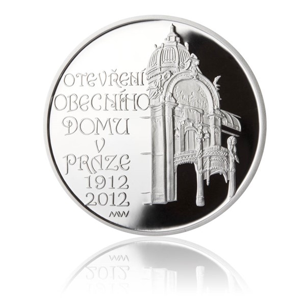 Stříbrná dvousetkorunová mince připomínající 100. výročí otevření Obecního domu v Praze je v pořadí poslední z pětice dvousetkorunových mincí vydávaných Českou národní bankou v roce 2012. Umělecký návrh vzešel z celostátní anonymní soutěže vyhlášené ČNB, jejímž vítězem se stala akademická sochařka Majka Wichnerová.