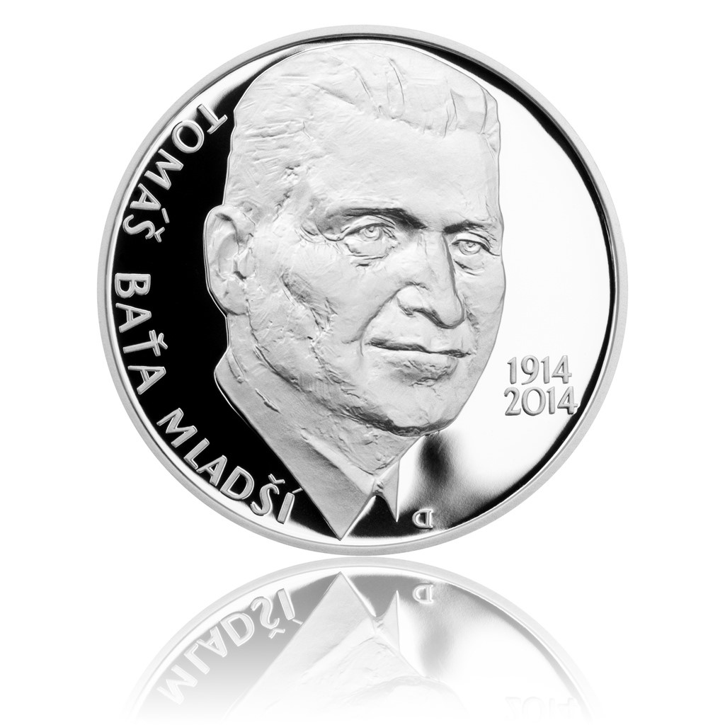Jeho zářné myšlenky výtečně korespondují s ryzím stříbrem kvality proof, jež této ražbě přísluší. Autorem averzu i reverzu je Vojtěch Dostál, DiS., jehož návrh zvítězil mezi 28 modely. Komise ocenila obzvláště vyváženou kompozici obou stran. Rub zdobí výstižná podobizna Tomáše Bati mladšího, líc pak nese trefnou grafiku ve stylu firmy Baťa. Tento umělecky zpracovaný kousek stříbra je sběratelským klenotem se silnou symbolikou jednoho z géniů 20. století.
