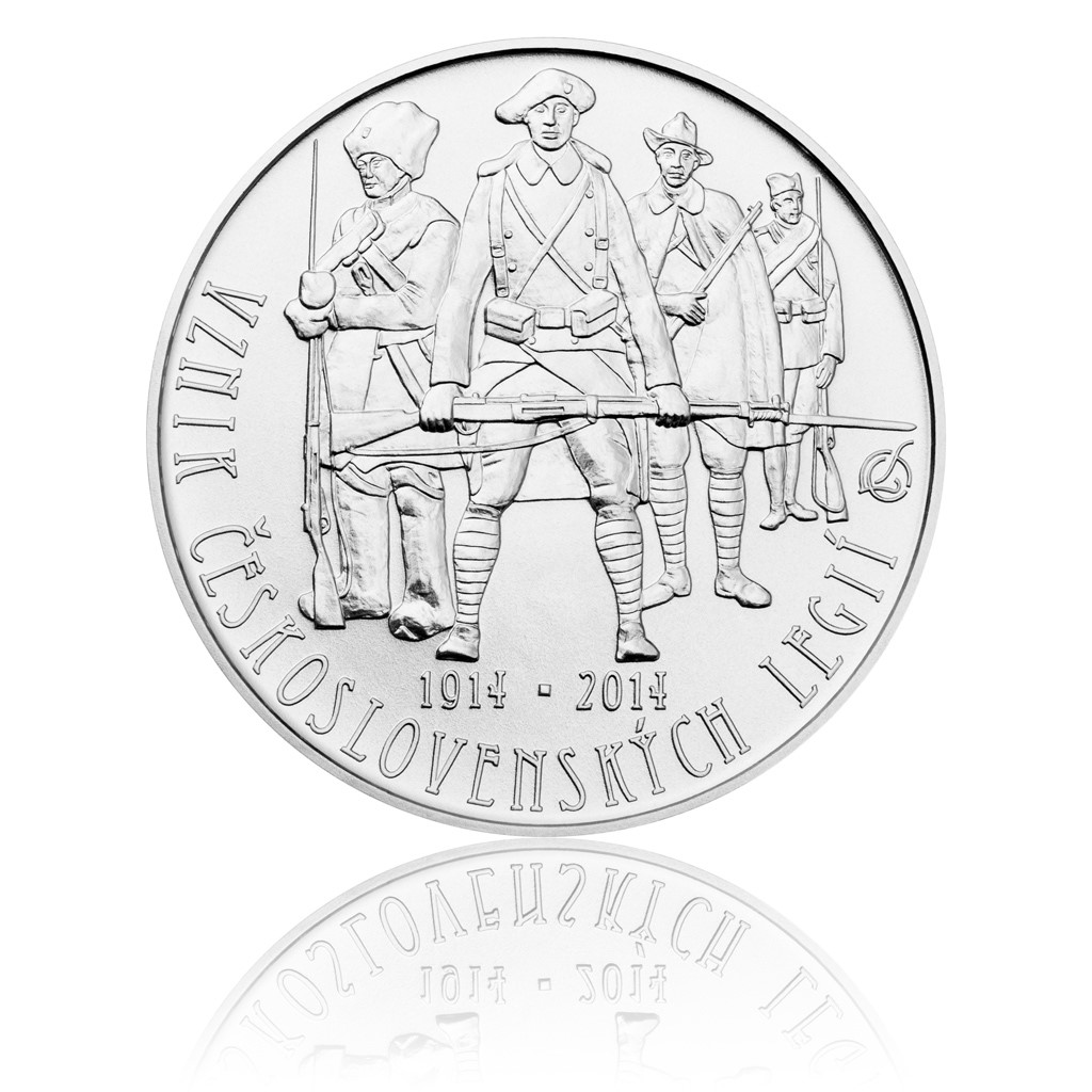Stříbrná mince 200 Kč 2014 Založení Československých legií stand