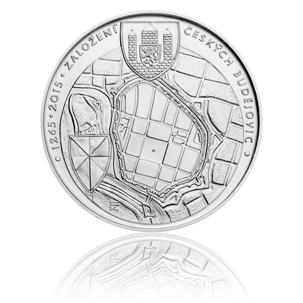 Stříbrná mince 200 Kč 2015 Založení Českých Budějovic jako královského města stand