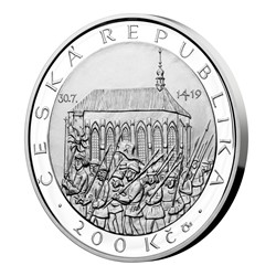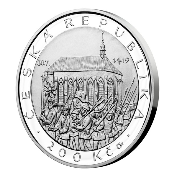 Husitství patří ke stěžejním kapitolám naší historie, a tak Česká národní banka nemohla opomenout 600. výročí první pražské defenestrace. Stříbrná mince s nominální hodnotou 200 Kč je vyražena ve špičkové kvalitě proof.