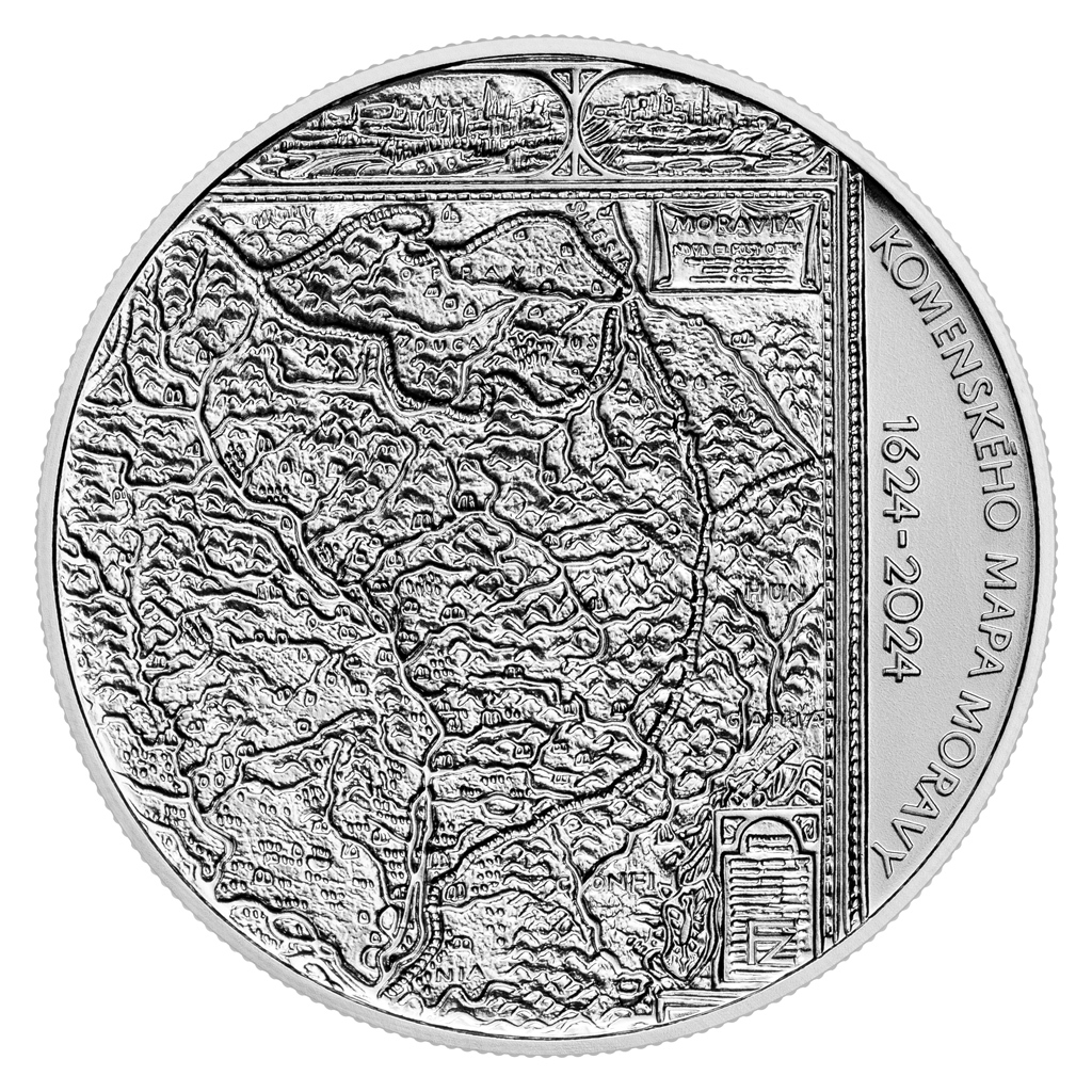 Stříbrná mince 200 Kč 2024 Vydání Komenského mapy Moravy stand