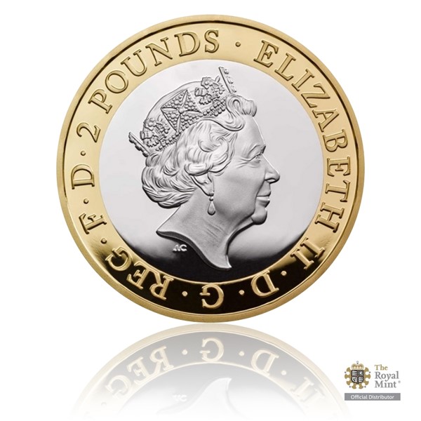 Výtvarník Thomas T. Docherty při tvorbě reverzní strany mince odolal pokušení vyobrazit netvora a přišel s originálním nápadem – křivkou EKG, která tvoří nápis FRANKENSTEIN. Averzní strana mince pak předkládá atributy jejího emitenta – portrét královny Alžběty II., opis „ELIZABETH II D G REG F D“ (Alžběta II., z Boží milosti královna, ochránkyně víry) a nominální hodnotu 2 POUNDS (GBP).