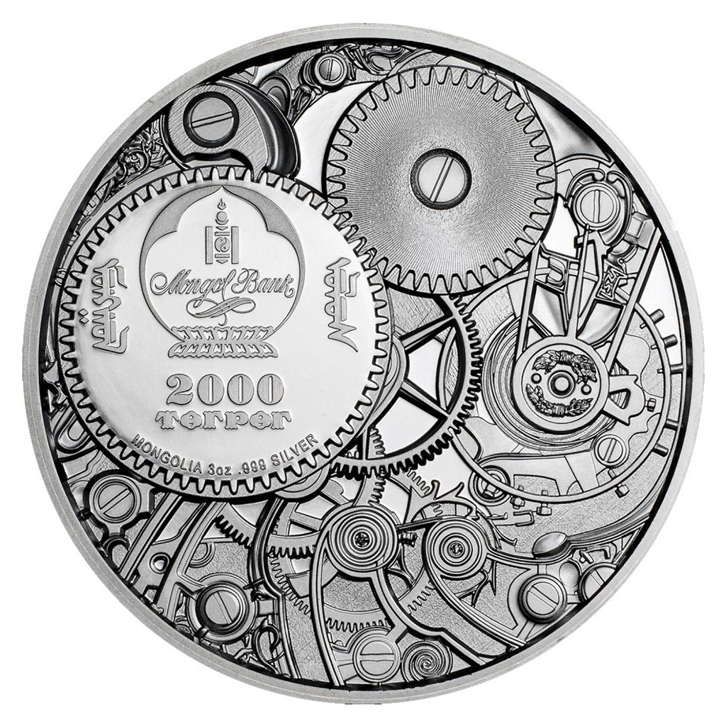 Reverzní strana pamětní mince předkládá neobyčejnou berušku – zatímco její krovky jsou zcela přirozené, zbytek těla je tvořen ozubenými kolečky, písty a jinými mechanickými součástkami. Mechanická je i květina, na které beruška sedí. Reverz je zpracován unikátní vícevrstvou technikou, která mu propůjčuje živé barvy. Averzní stranu pak vyplňuje propracovaný hodinový strojek, do kterého jsou zakomponovány atributy emitenta mince – státní znak Mongolska a nominální hodnota 2000 TOGROG. To vše je zpracováno v hlubokém reliéfu.