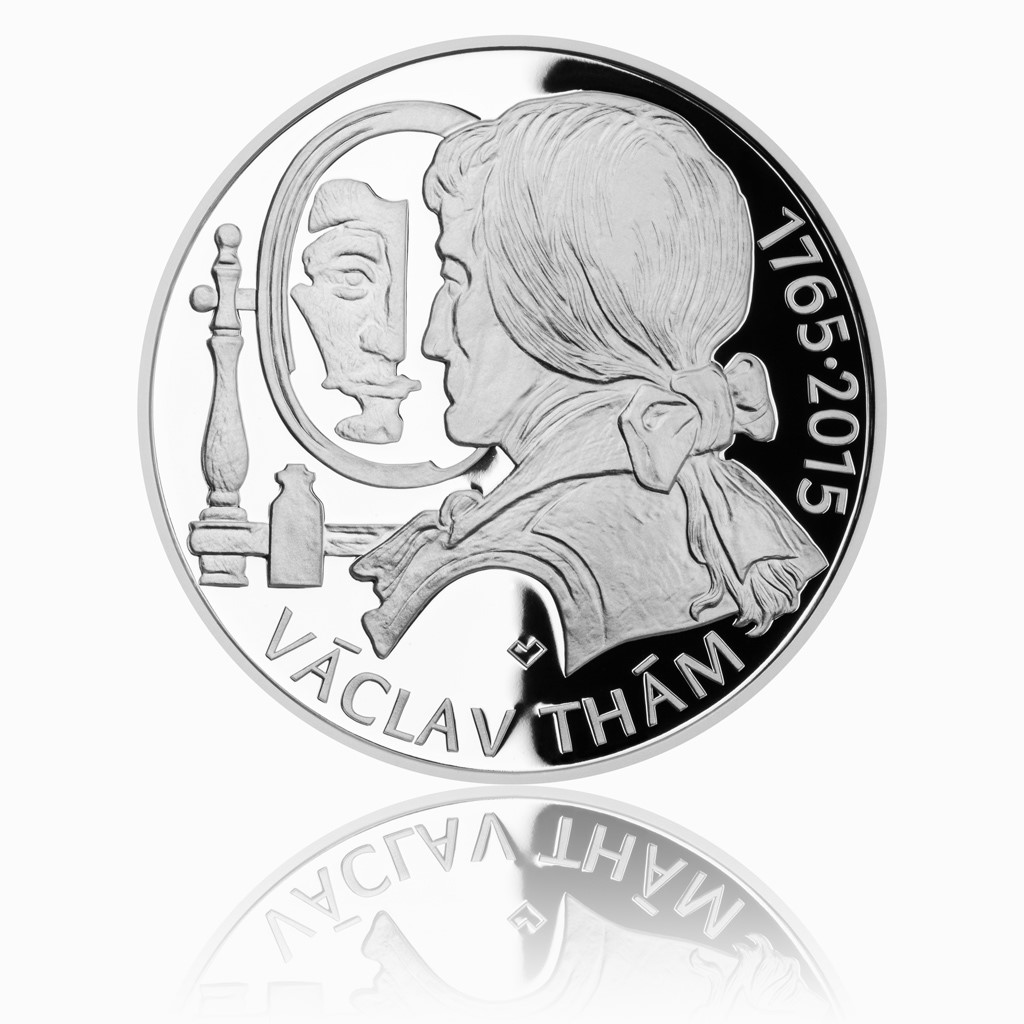 Vzhledem k tomu, že se nezachoval žádný Thámův portrét, byla soutěž na pamětní stříbrnou pětisetkorunovou minci ke 250. výročí jeho narození pro naše medailéry skutečně velkou výzvou. Poradili si s ní však skvěle – své návrhy předložilo 17 výtvarníků, z nichž komise pro realizaci vybrala model akademického sochaře Michala Vitanovského. Ten přesvědčil originálním a vtipným řešením Thámova portrétu na reverzu a výjimečným figurálním a sochařským námětem averzu. Špičková kvalita proof pak propůjčuje minci další půvabný rozměr. Mimořádné téma i atraktivní provedení mince dávají tušit značný zájem sběratelů. Už jste si rezervovali tu svou?