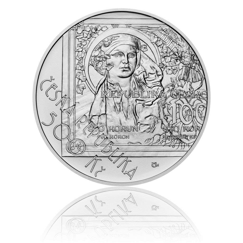 Ve výtvarné soutěži České národní banky zvítězil návrh medailéra a pedagoga Luboše Charváta, který na minci dokonale převedl výjevy z rubové i lícové strany Muchovy stokoruny. Odborná komise ocenila zejména výstižné převedení ženského portrétu z kresby do reliéfní podoby.