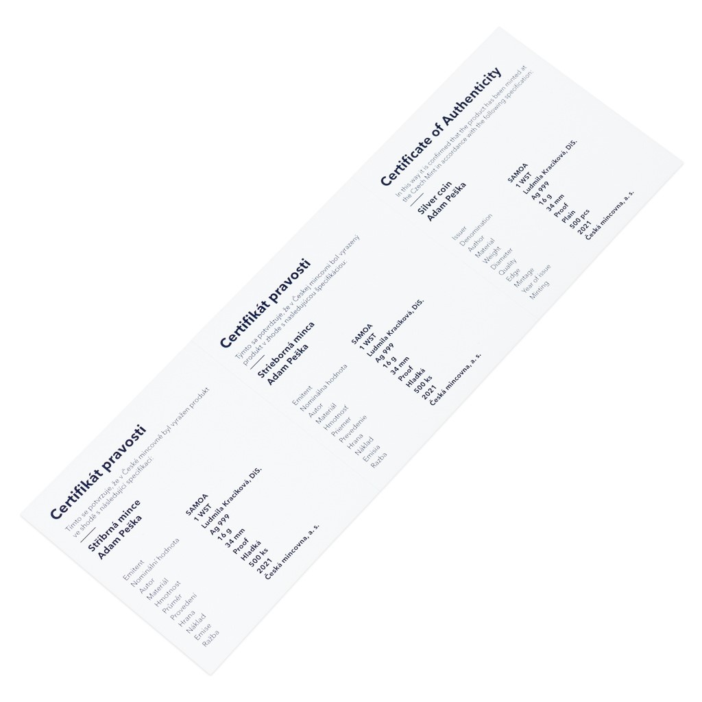 Reverzní strana mince, která je dílem medailérky Ludmily Kracíkové, DiS., předkládá boccistu s triumfálním úsměvem na tváři a zlatou medailí na krku. Opis uvádí ADAM PEŠKA – TOKIO 2020 – ZLATÁ MEDAILE – BOCCIA. Sportovní mince České mincovny vycházejí v zahraniční licenci státu Samoa, a jejich averzní strana proto nese nezbytné atributy tohoto emitenta – státní znak, jméno a portrét královny Alžběty II., letopočet emise 2021 a nominální hodnotu 1 DOLLAR (WST).