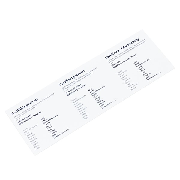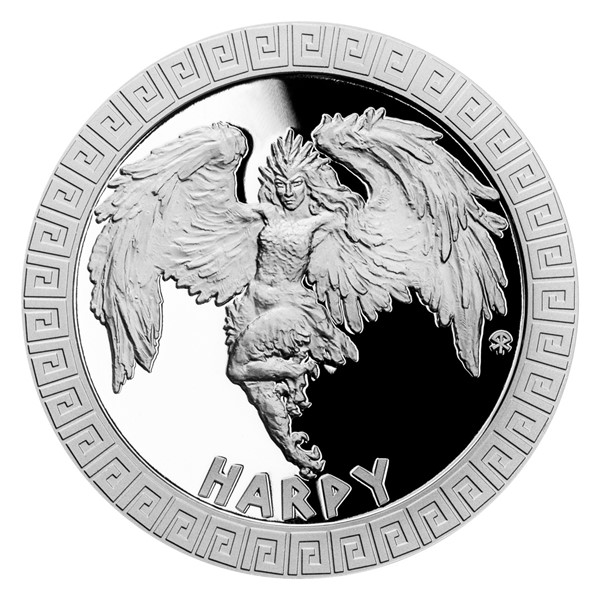 Čtvrtá stříbrná mince České mincovny ze sběratelské série Bájní tvorové představuje harpyji.