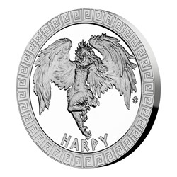 Na reverzní straně mince je harpyje v podání Asamata Baltaeva, DiS., krásná, ale přesto divoká a nebezpečná. Celé tělo má pokryté peřím, lidskou má jenom tvář. Její vyobrazení doprovází anglický opis HARPY. Není bez zajímavosti, že mince nemá klasický mincovní rámeček – namísto něj je reliéf obklopen ozdobnými ornamenty, které prostupují celým sběratelským cyklem. Protože mince České mincovny vycházejí v zahraniční licenci ostrova Niue, nesou na averzní straně jméno a portrét panovnice Alžběty II., nominální hodnotu 2 DOLLARS (NZD) a rok emise 2020.