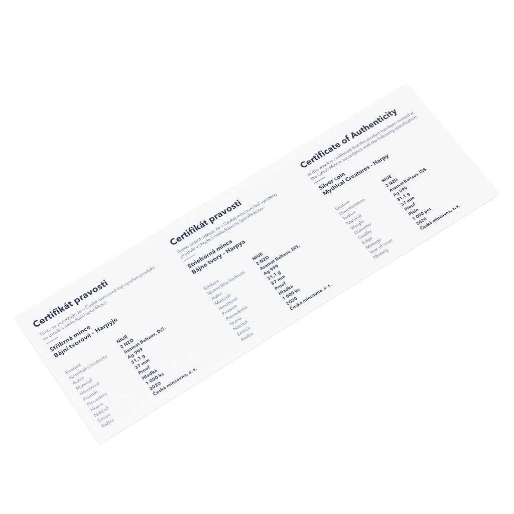 Stříbrná mince Bájní tvorové - Harpyje proof