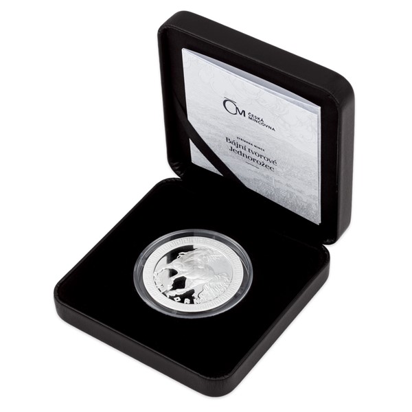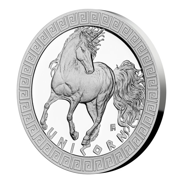Na šesté stříbrné minci České mincovny ze sběratelského cyklu Bájní tvorové se objevuje jednorožec.