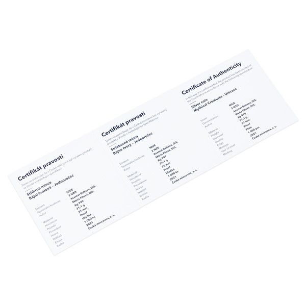 Stříbrná mince Bájní tvorové - Jednorožec proof