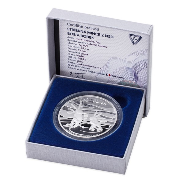 Stříbrná mince, jíž dominují oba králíci v hokejové výstroji, představuje atraktivní sběratelskou záležitost. Bob s Bobkem se vydali na led u příležitosti konání Mistrovství světa v ledním hokeji, které v roce 2015 hostí stadiony České republiky a které si rozverné králíky vybralo za maskoty. Oba zvířecí hokejisty nakreslil Vladimír Jiránek a na reverz mince je přenesla znamenitá česká medailérka Irena Hradecká, DiS. Kompozice averzu je pak tvořena portrétem královny Alžběty II. a dalšími nezbytnými atributy emitenta. Půvabná mince ve stříbrném provedení je dostupnou výzvou k založení prvních kolekcí malých numismatiků!